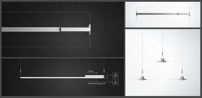 LED függesztett lámpatest víztiszta fényvezető testtel,