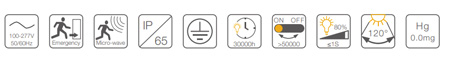 Élettartam >50,000 óra, Lumen-megtartás: L80/B10 @ 50.000h, 5 év garancia